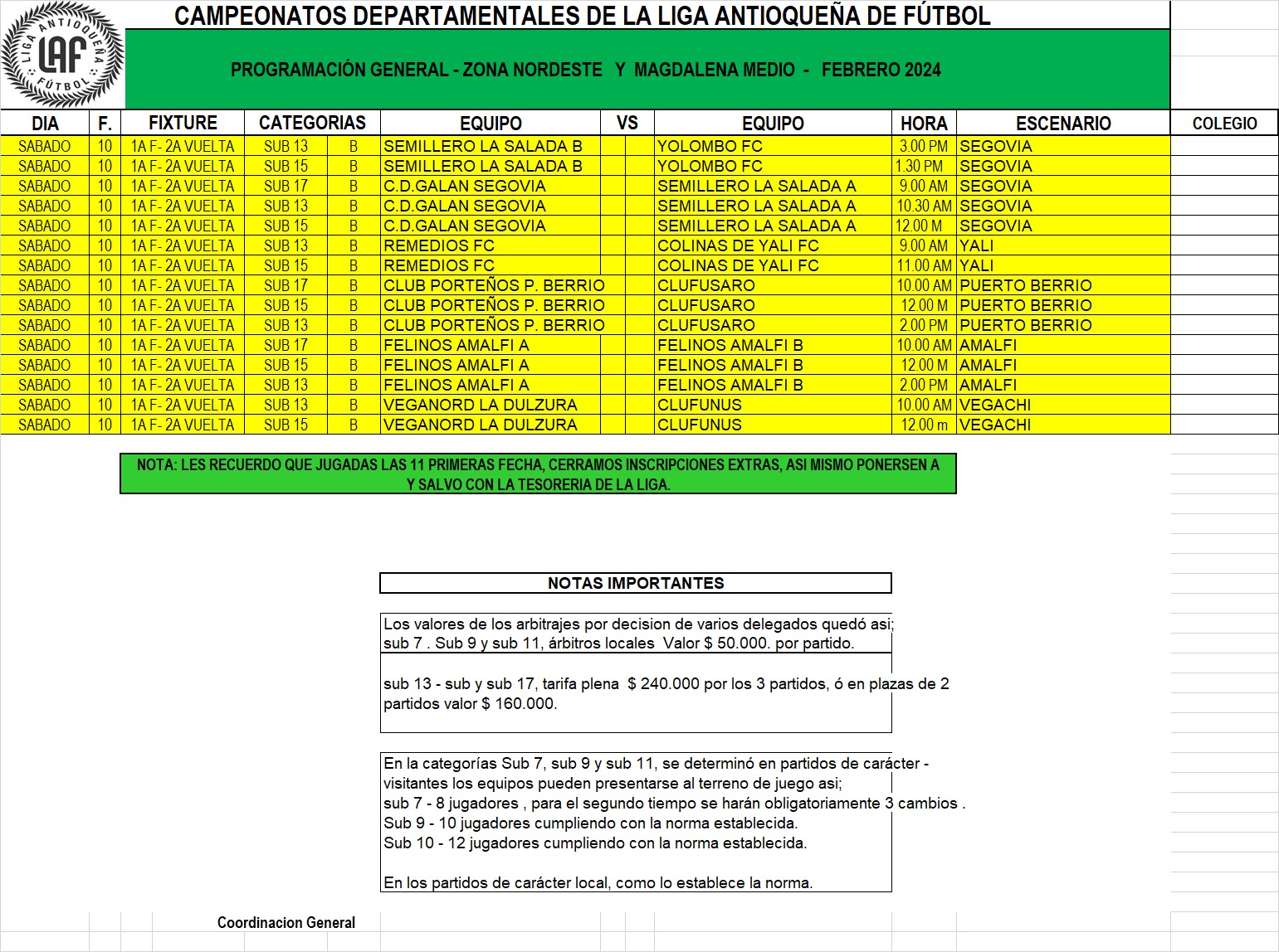 - Calendario selección Antioquia Infantil de hombres – Fase Semifinal Campeonato Nacional Infantil Masculino 2020.
