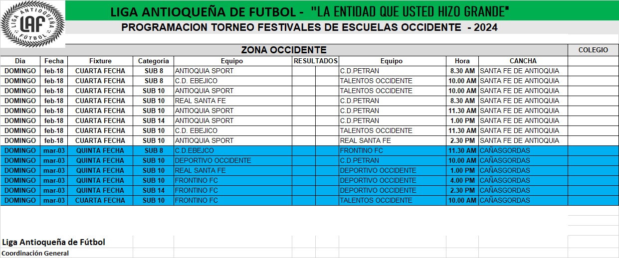 Programación Festivales de Escuelas Occidente